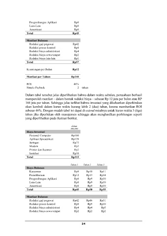 144 juta per tahun. Sehingga jelas terlihat bahwa investasi yang dikeluarkan diperkirakan