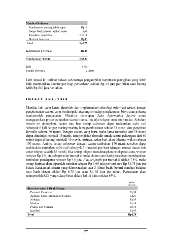 bulan. Katakanlah sistem yang diinvestasikan ada 5 (lima) buah, berarti manfaat bulanan