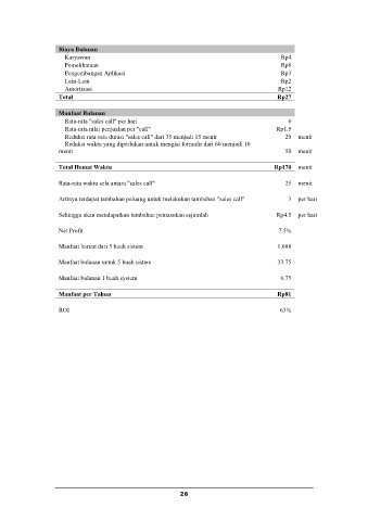 Reduksi rata-rata durasi "sales call" dari 35 menjadi 15 menit         20  menit