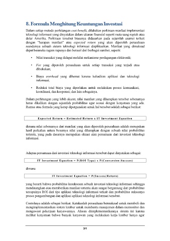 Adapun persamaan dari investasi teknologi informasi tersebut dapat dinyatakan sebagai: