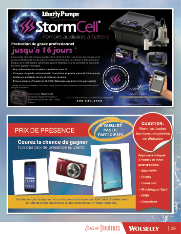 Les gagnants seront contactés par leur vendeur Wolseley le 9 novembre 2018.