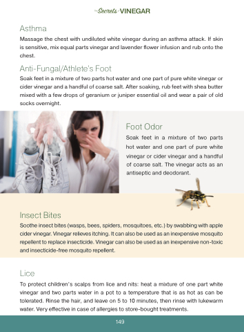 Soothe insect bites (wasps, bees, spiders, mosquitoes, etc.) by swabbing with apple cider vinegar. Vinegar relieves itching. It can also be used as an inexpensive mosquito repellent to replace insecticide. Vinegar can also be used as an inexpensive non-toxic and insecticide-free mosquito repellent.