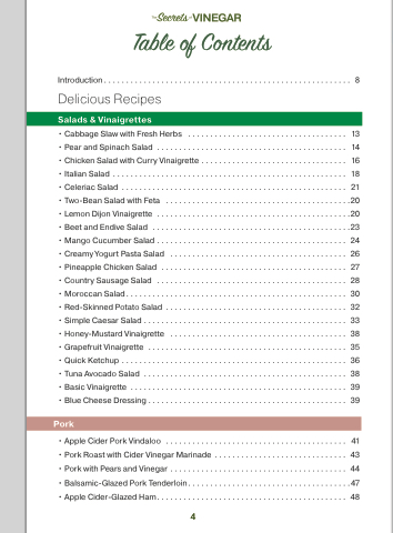 • Apple Cider Pork Vindaloo . . . . . . . . . . . .............................. 41 • Pork Roast with Cider Vinegar Marinade .............................. 43 • Pork with Pears and Vinegar . . . . . . . . . . .............................. 44 • Balsamic-Glazed Pork Tenderloin. . . . . . . . . . . . . . . . . . . . . . . . . . . . . . . . . . . . .47 • Apple Cider-Glazed Ham. . . . . . . . . . . . . .............................. 48