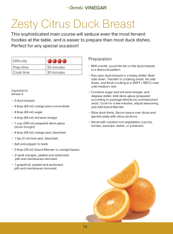 • Slice duck thinly. Spoon sauce over slices and garnish plate with citrus sections.