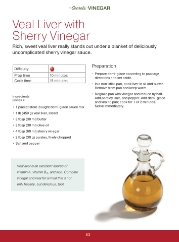 Veal liver is an excellent source of vitamin A, vitamin B12, and iron. Combine vinegar and veal for a meal that’s not only healthy, but delicious, too!