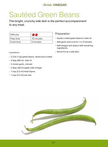 • 2.2 lb (1 kg) green beans, sliced and cooked • 4 tbsp (60 ml) olive oil