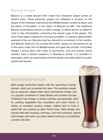 Banyuls is a sweet dessert wine made from Grenache grapes grown on ancient vines. These particular grapes are cultivated in terraces on the slopes of the Pyrenees overlooking the Mediterranean, bordering Spain and the plains of Roussillon, in the region of Banyuls-sur-Mer. The traditional Banyuls winemaking process is called mutage, in which alcohol is added to must to stop fermentation, preserving the natural sugar of the grapes. The wine is then aged in barrels for as long as possible, or outside in glass bottles exposed to the sun. Banyuls must be matured for a minimum of ten months, and Banyuls Grand Cru for at least 30 months. Aging it in oak barrels for up to five years under the hot Mediterranean sun gives this smooth, full-bodied vinegar a strong flavor with notes of red berries, nuts and licorice. Some varieties have a distinct raspberry or blackberry aroma. It is excellent in marinades, perks up mayonnaises and fish salads, and adds depth to poultry gravies and sauces.
