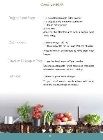 Dog and cat fleas • 1⁄2 cup (125 ml) apple cider vinegar • 1⁄2 tbsp (2.5 ml) tea tree essential oil