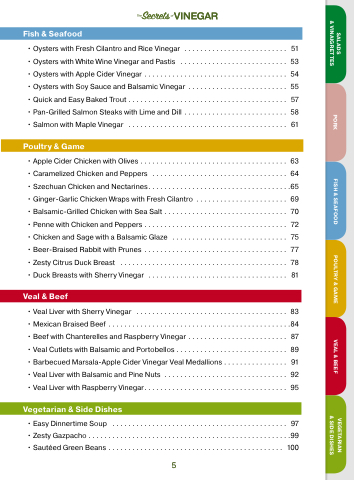 •VealLiverwithSherryVinegar ...................................... 83 •MexicanBraisedBeef ..............................................84 •BeefwithChanterellesandRaspberryVinegar ......................... 87 •VealCutletswithBalsamicandPortobellos............................ 89 •BarbecuedMarsala-AppleCiderVinegarVealMedallions................ 91 •VealLiverwithBalsamicandPineNuts ............................... 92 •VealLiverwithRaspberryVinegar.................................... 95