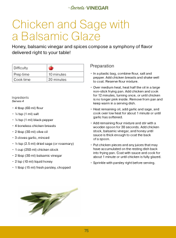 • Add remaining flour mixture and stir with a wooden spoon for 30 seconds. Add chicken stock, balsamic vinegar, and honey until sauce is thick enough to coat the back