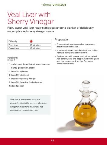 Veal liver is an excellent source of vitamin A, vitamin B12, and iron. Combine vinegar and veal for a meal that’s not only healthy, but delicious, too!