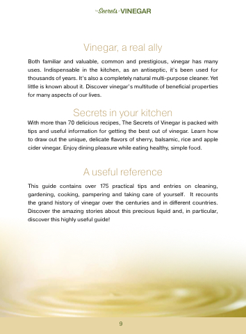 This guide contains over 175 practical tips and entries on cleaning, gardening, cooking, pampering and taking care of yourself. It recounts the grand history of vinegar over the centuries and in different countries. Discover the amazing stories about this precious liquid and, in particular, discover this highly useful guide!