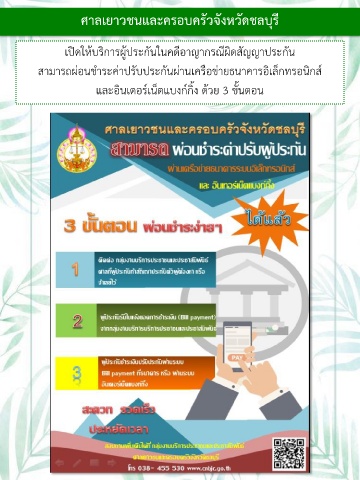 ศาลเยาวชนและครอบครัวจังหวัดชลบุรี เปิดให้บริการผู้ประกันในคดีอาญากรณีผิดสัญญาประกัน สามารถผ่อนช าระค่าปรับประกันผ่านเครือข่ายธนาคารอิเล็กทรอนิกส์ และอินเตอร์เน็ตแบงก์กิ้ง ด้วย 3 ขั้นตอน
