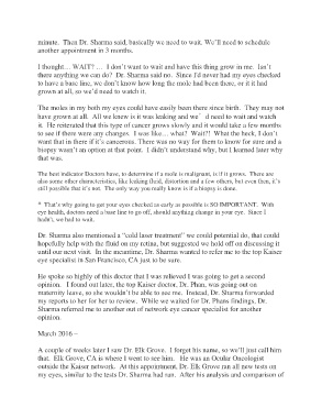 until our next visit. In the meantime, Dr. Sharma wanted to refer me to the top Kaiser