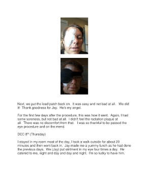 the previous days. We (Jay) put ointment in my eye four times a day. He