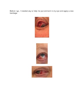 Before I go, I needed Jay to help me put ointment in my eye and apply a new bandage.