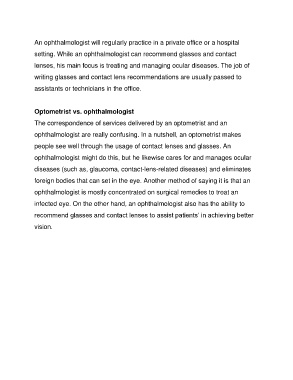 infected eye. On the other hand, an ophthalmologist also has the ability to