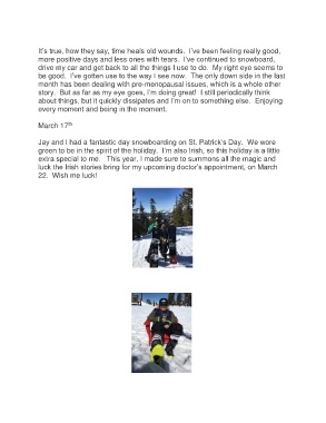 more positive days and less ones with tears. I’ve continued to snowboard,