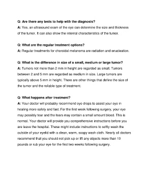 A: Regular treatments for choroidal melanoma are radiation and enucleation.
