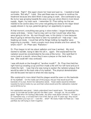 treatment. Right? She again shook her head and said no. I started to freak