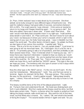 one that metastasizes. Metastasizes? I said. Yes, and that eye cancer is