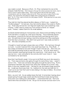 They told him that they placed another plaque on Ruth’s eye. I asked him,