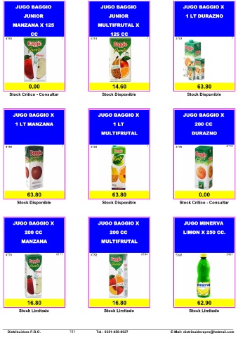 Distribuidora P.R.O. 101 Tel.: 0351-458-8927 E-Mail: distribuidorapro@hotmail.com
