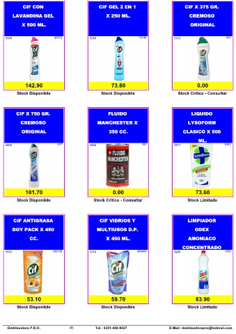 Distribuidora P.R.O. 45 Tel.: 0351-458-8927 E-Mail: distribuidorapro@hotmail.com