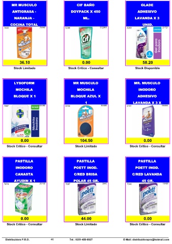 Distribuidora P.R.O. 46 Tel.: 0351-458-8927 E-Mail: distribuidorapro@hotmail.com