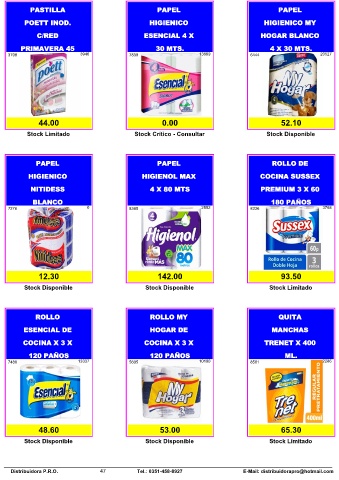 Distribuidora P.R.O. 47 Tel.: 0351-458-8927 E-Mail: distribuidorapro@hotmail.com