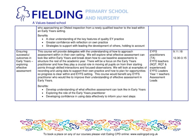 so progress is clear within and EYFS setting. This course would benefit any EYFS Year 1 teachers