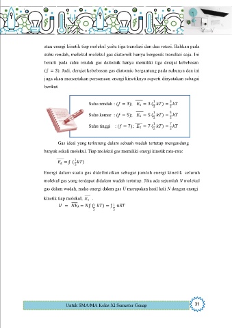 (ƒ = 3). Jadi, derajat kebebasan gas diatomic bergantung pada suhunya dan ini