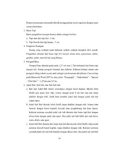 Pengetikan dimulai dari batas tepi kiri kecuali alinea baru, persamaan, daftar,