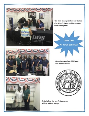 This Cobb County resident was thrilled that driver’s license and tag services were both offered! TEAM DDS AT YOUR SERVICE! Group Portrait of the DDS Team and the DOR Team! Becky helped the very first customer with an address change.