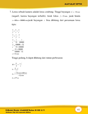 7. Lensa sebuah kamera adalah lensa cembung. Tinggi bayangan h 92 mm