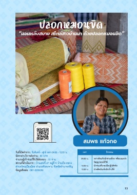 จ�านวนผู้เข้าร่วมที่รับได้ต่อรอบ : 10 ท่าน 09.00 น. กล่าวต้อนรับนักท่องเที่ยว พร้อมแนะน�า
