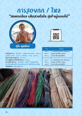 วันที่เปิดท�าการ : วันจันทร์ - อาทิตย์ เวลา 08.00 - 15.00 น. 08.30 น. วัสดุอุปกรณ์ที่ใช้ในการสอยกก