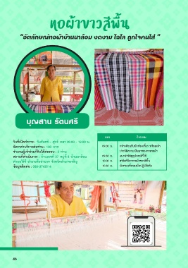 ต�าบลไร่ขี อ�าเภอลืออ�านาจ จังหวัดอ�านาจเจริญ 10.00 น. สาธิตวิธีการทอผ้าขาวสีพื้น