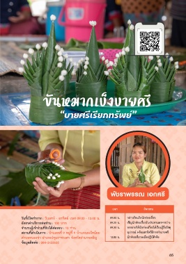 สถานที่ด�าเนินการ : บ้านเลขที่ 9 หมู่ที่ 9 บ้านหนองไฮน้อย อุปกรณ์ พร้อมสาธิตวิธีการท�าบายศรี