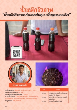 สถานที่ด�าเนินการ : บ้านเลขที่ 68 หมู่ที่ 9 บ้านหนองไฮน้อย 10.00 น. อธิบายวิธีการท�าน�้าหมักชีวภาพ รวมถึง