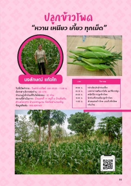 จ�านวนผู้เข้าร่วมที่รับได้ต่อรอบ : 20 ท่าน 09.30 น. สาธิตวิธีการปลูกข้าวโพด
