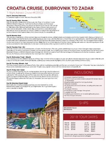 a stop on the way for a swim. Arriving in Sibenik, a walking tour shows you the highlights of the city, then your evening is at leisure (B,L).