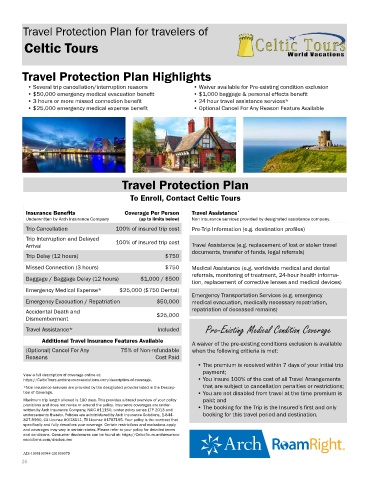 https://CelticTours.archinsurancesolutions.com/description-of-coverage. • You insure 100% of the cost of all Travel Arrangements