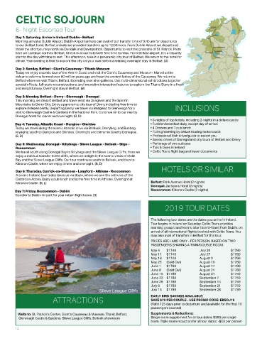 to our Belfast hotel. Belfast arrivals are provided transfers up to 12:00 noon. From Dublin Airport we depart and