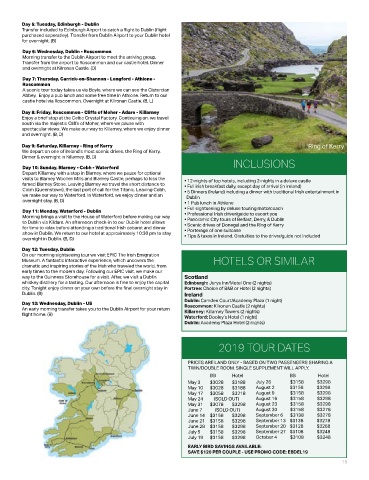 • Full irish breakfast daily, except day of arrival (in Ireland)