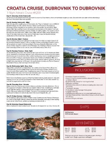 Note: Due to the limited capacity of the Hvar harbor (during peak season in July and   • Seven (7) nights accommodations aboard MS Karizma,