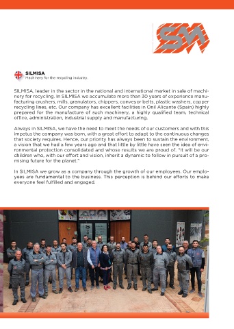 nery for recycling. In SILMISA we accumulate more than 30 years of experience manu-