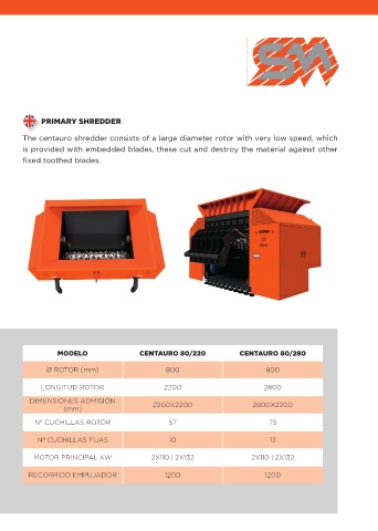The centauro shredder consists of a large diameter rotor with very low speed, which