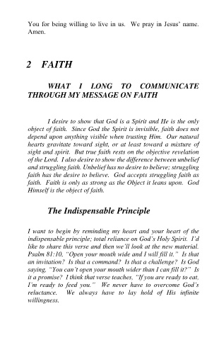indispensable principle; total reliance on God’s Holy Spirit. I’d