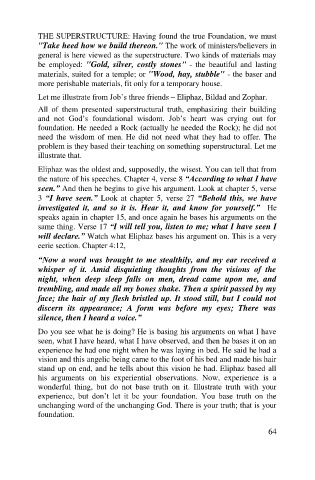 stand up on end, and he tells about this vision he had. Eliphaz based all